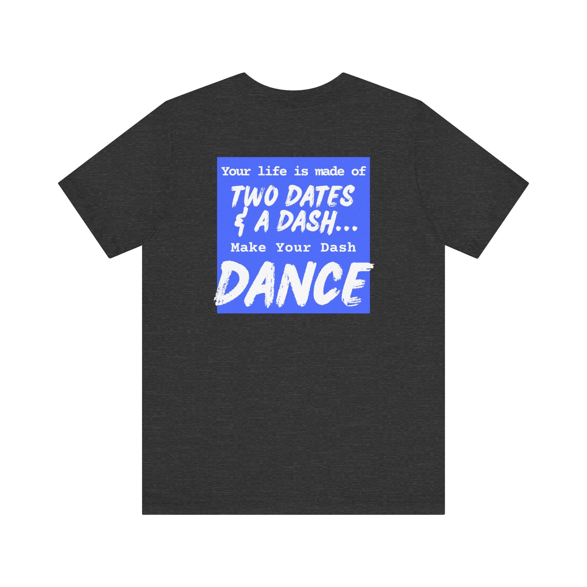 The Dash Dancer T-shirt reminds us to live life to the fullest. Inspired by the quote, "Your life is made of two dates and a dash... Make your dash DANCE!"